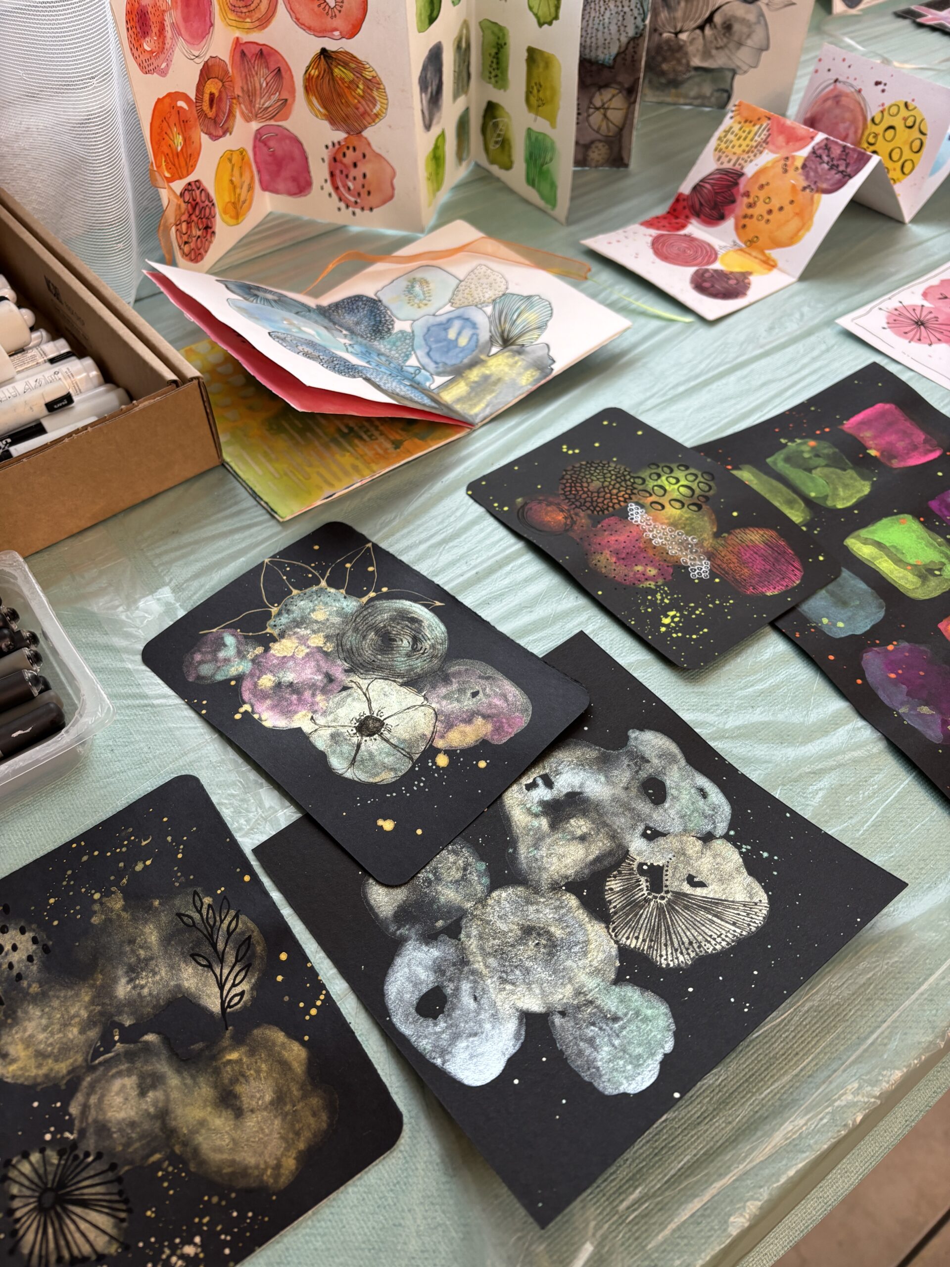 In diesem Kreativ Workshop lassen wir die Farben fliessen und gestalten Aquarell Doodles mit Aquarellfarben und Fineliner.