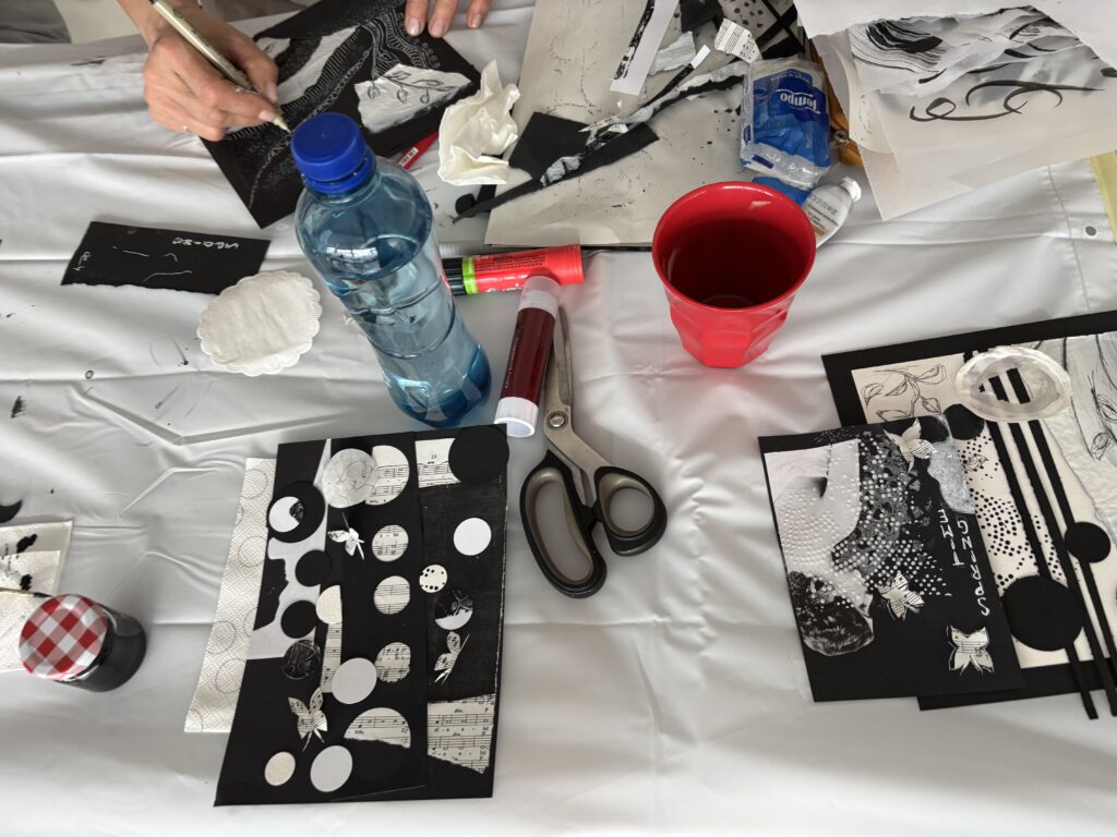 Tauche ein in die faszinierende Welt der Schwarz-Weiss-Collage und entdecke die Wirkung von Kontrasten, Strukturen und Zwischentönen. In diesem Workshop steht dir eine vielfältige Auswahl an Mixed-Media-Papieren, Texten und Bildern zur Verfügung, aus denen du deine ganz persönlichen Collagen gestaltest.